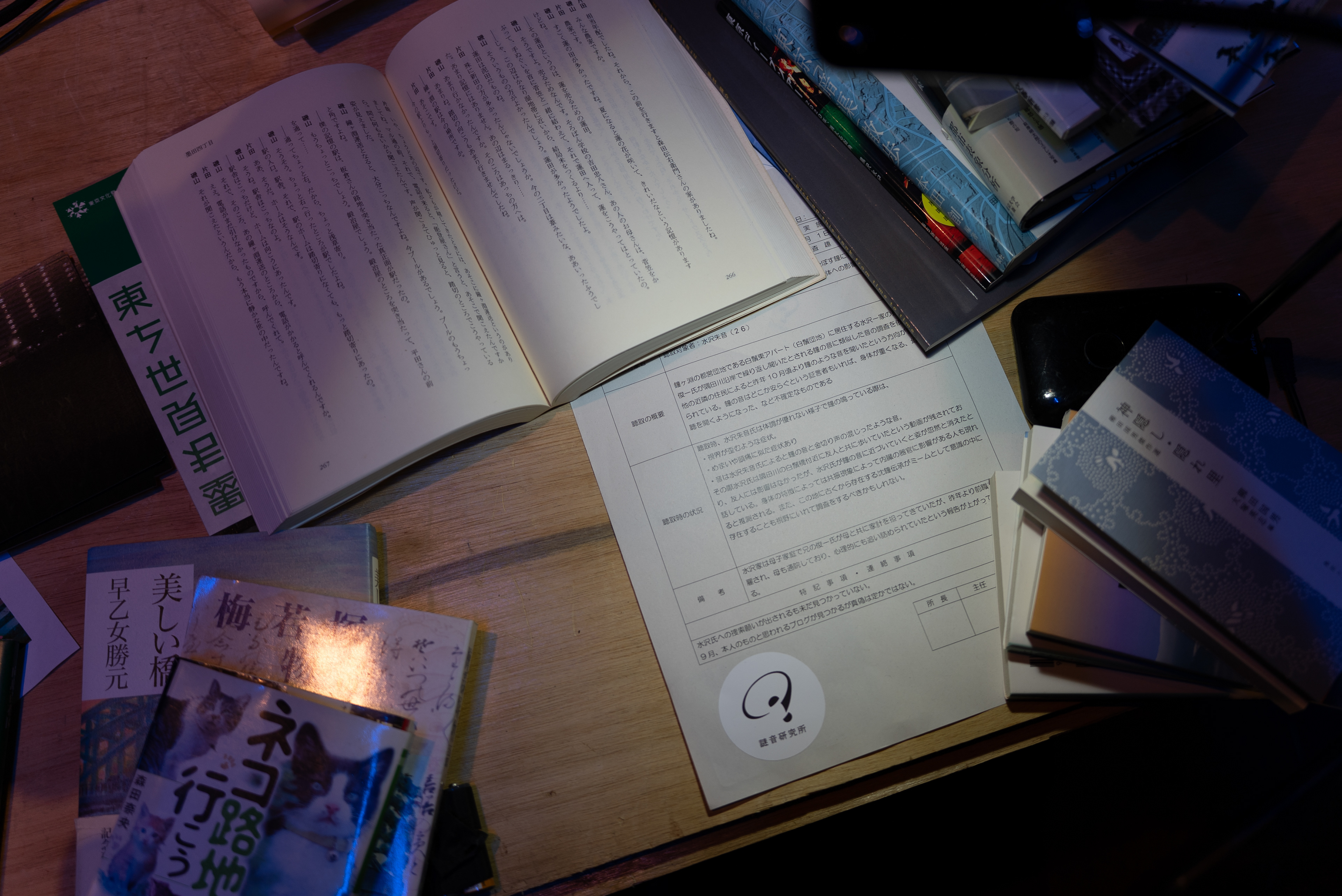 墨田区・鐘ヶ淵に実在する沈鐘伝説をモチーフに、架空の研究所「謎音研究所」による調査という設定のもと展開される参加型パフォーマンスを撮影しました。